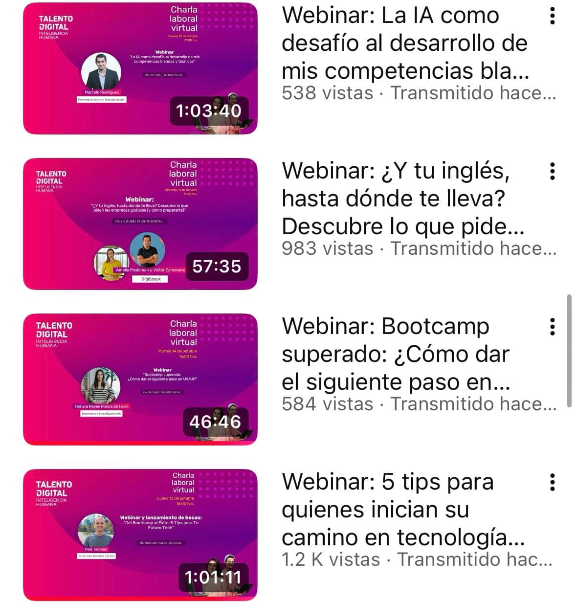 La feria también incluyó un completo ciclo de cuatro webinars, que alcanzaron más de 3.300 visualizaciones totales, abordando temáticas clave para el desarrollo profesional y la inserción laboral en tecnología, en donde además se entregaron 350 becas de formación, de las cuales 250 corresponden a becas para inglés, otorgadas por DigiSpeak y 100 becas de desarrollo y datos, proporcionadas por la empresa Kranio, fortaleciendo así las competencias de quienes buscan dar el siguiente paso en su carrera digital.